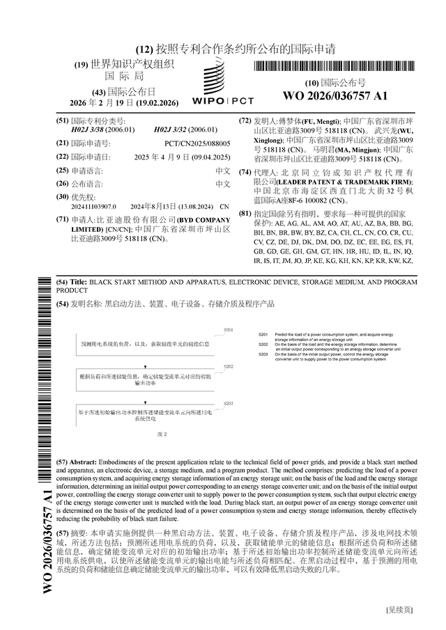 证券之星音讯,字据企查查数据清楚比亚迪(002594)公布了一项海外专利请求,专利名为“黑初始措施、安装、电子成就、存储介质及设施产物”,专利请求号为PCT/CN2025/088005,海外公布日为2026年2月19日。