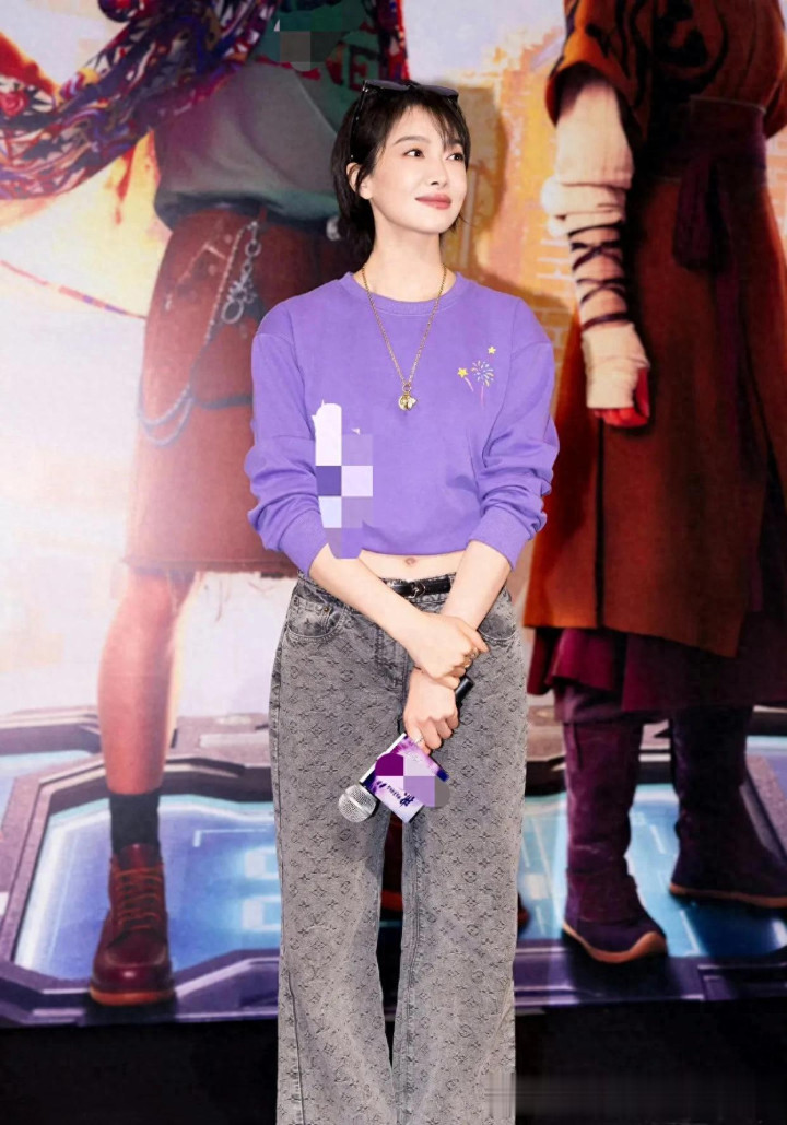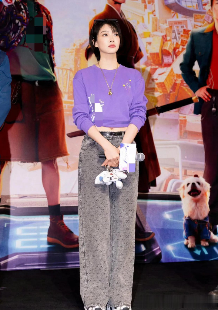 开云体育官方网站 宋茜短发气质可以! 穿紫色卫衣+印花牛仔裤, 端淑又减龄!