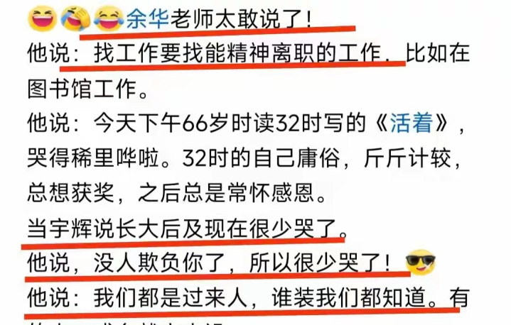 可谁也没思到,余华一句话,就澈底刺穿了东说念主心底层的防地。