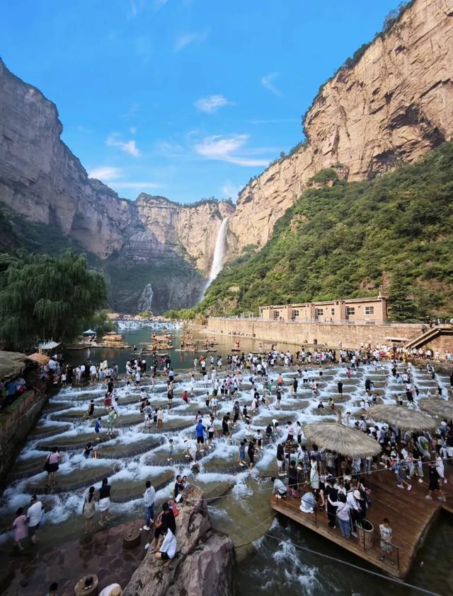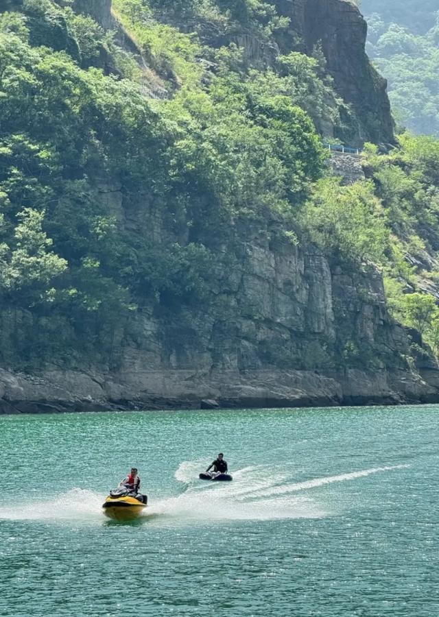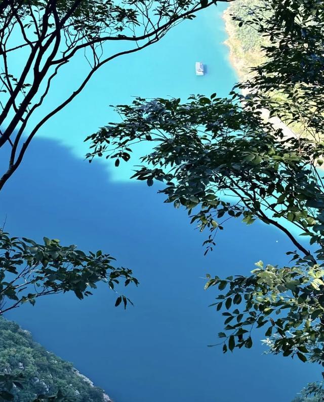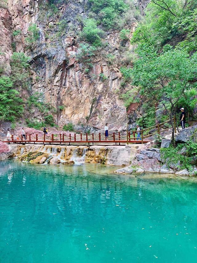 潭水呈现碧绿至孔雀蓝的渐变色,被称为“太行山的蓝眼泪”,潭水领路如镜,两岸是丹崖赤壁牢牢围绕,景观小数也不输“九寨沟”,我和一又友说这几乎是我们河南的东谈主间瑶池啊!好天,在阳光的照耀下,水光潋滟,极具诗意。