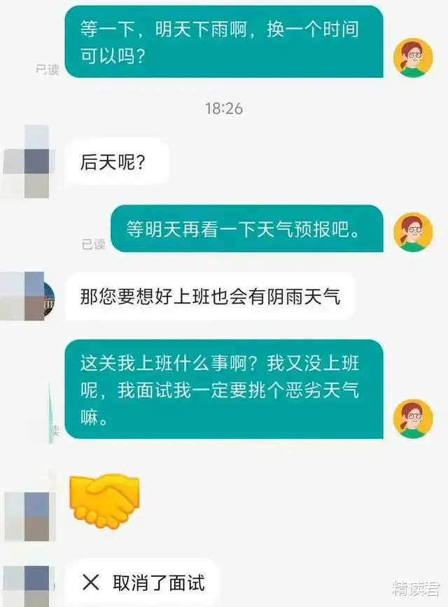 帖主坐窝回怼:“这关我上班什么事啊?我又没上班呢,我口试我一定要挑一个恶劣天气吗?”